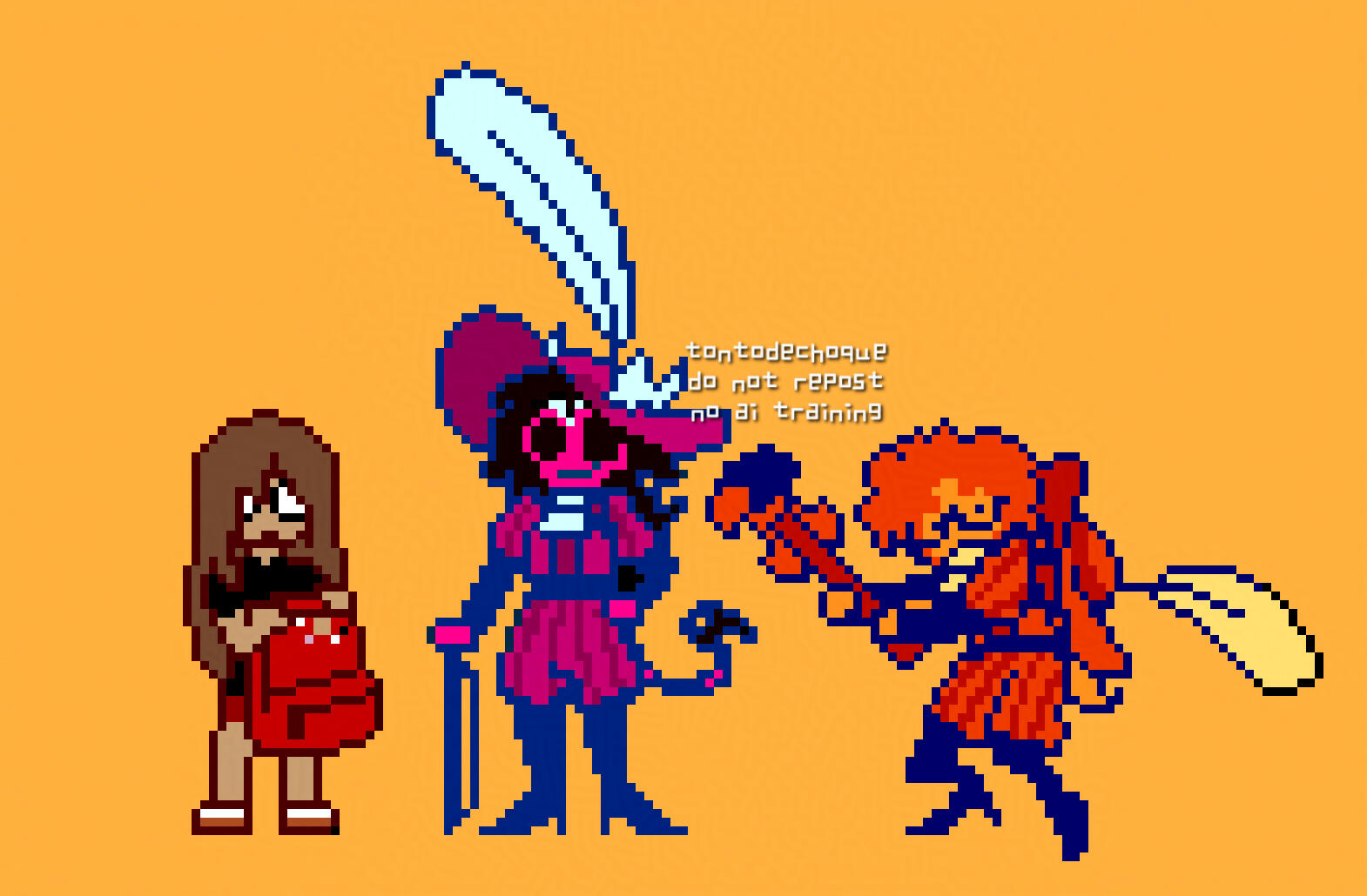 Use of my art:I'd be flattered if you use my art as an icon or banner! Just make sure I'm credited somewhere on your profile.Reposts are not allowed! If you ever see anyone reupload our art to somewhere we haven't linked in this carrd, let us know so we can take measures (kill them).Regarding edits: editing our art or putting it in an edit is fine as long as you: